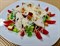 Лист салата, соус цезарь, куриное филе, черри, крутоны чесночные, пармезан.